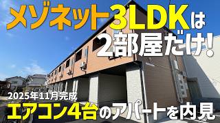最新のメゾネット3LDK賃貸はエアコン4台付き☆2025年11月新築のインナーテラスがあり猫と住めるペット可アパートをみきゃんと内見ルームツアーin松山市♬愛媛 松山で引越無料のお部屋探し♪みかん不動産 松山店