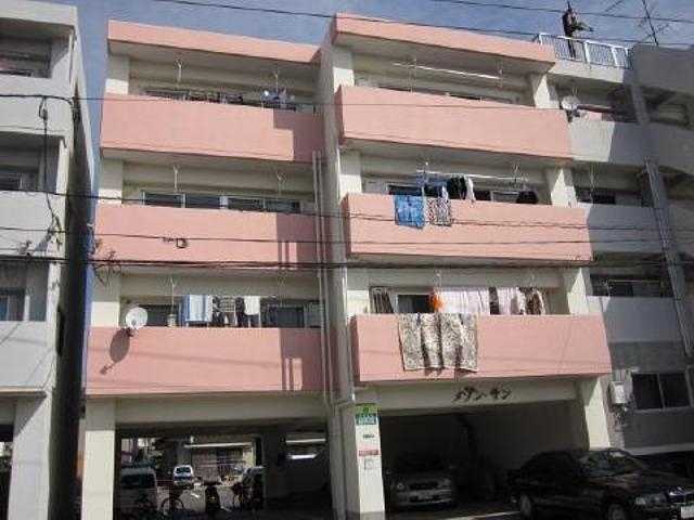 愛媛県松山市中村4丁目1-14に1993年3月(平成5年 3月)新築の賃貸住宅(間取りが2DK のマンション)、メゾンサンの401号室です。鉄筋コンクリート造(RC造)4階建ての4階角部屋になります。