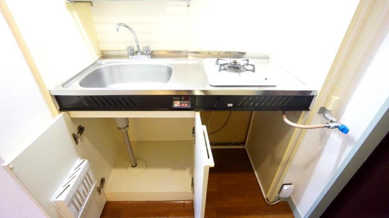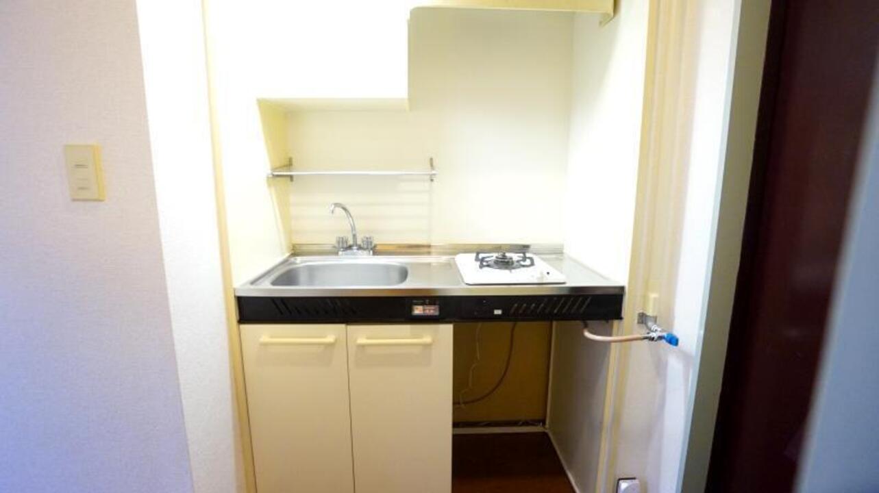システムキッチン、ガスコンロ、照明器具などの設備がある部屋となります。