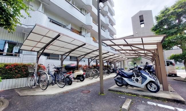 エレベーター、プロパンガス、CATV、光ファイバー、オートロック、駐輪場、クローゼット、出窓、照明器具、エアコン、BSアンテナ、CSアンテナ、モニター付インターホン、ディンプルキー、バス・トイレ別