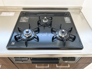温水洗浄暖房便座、室内洗濯機置き場、システムキッチン、ガスコンロ、照明器具、TVモニター付きインターホンなどの設備がある部屋となります。