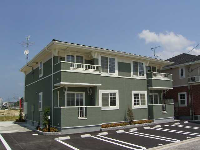 愛媛県松山市平田町1441に2006年8月(平成18年8月)新築の賃貸住宅(間取りが2LDK のアパート)、ミモザ(ミモザ)の201号室です。木造(W造)2階建ての最上階2階角部屋になります。
