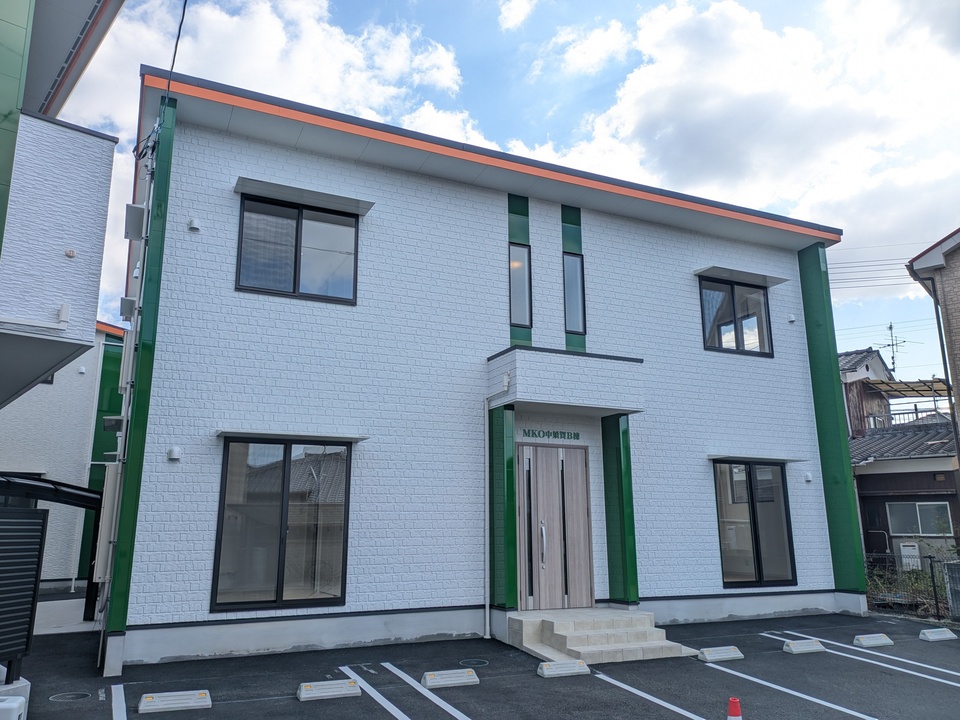 愛媛県松山市中須賀2丁目2−26に2025年8月(令和7年8月)新築の賃貸住宅(間取りが1LDK のアパート)、MKO中須賀Bの102号室です。木造(W造)2階建ての1階になります。