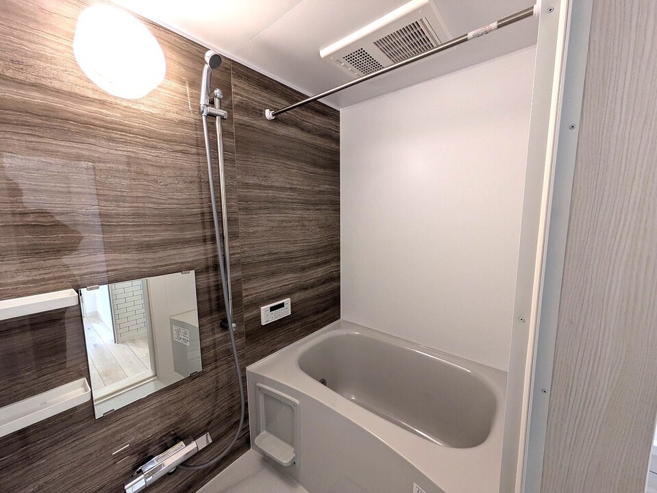 温水洗浄暖房便座、洗髪洗面化粧台(シャンプードレッサー)、室内洗濯機置き場、システムキッチン、ガスコンロなどの設備がある部屋となります。