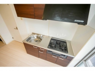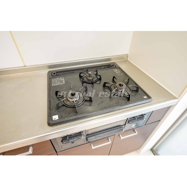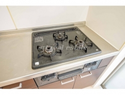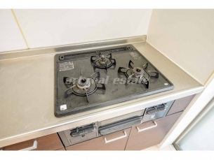 温水洗浄暖房便座、洗髪洗面化粧台(シャンプードレッサー)、室内洗濯機置き場、システムキッチン、ガスコンロ、照明器具、TVモニター付きインターホンなどの設備がある部屋となります。