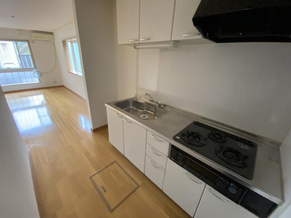 プロパンガス、光ファイバー、駐輪場、温水洗浄便座(シャワートイレ)、浴室乾燥機、システムキッチン、床下収納、室内洗濯機置場、出窓、エアコン、BSアンテナ、メゾネット、24時間換気、バス・トイレ別