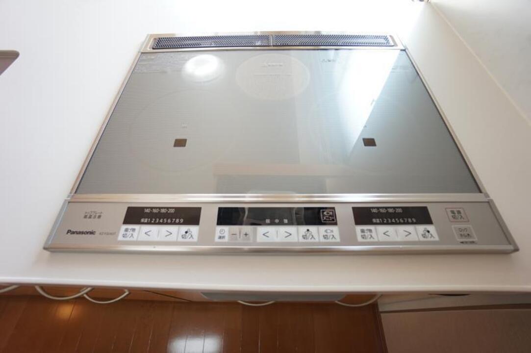 | エレベーター、プロパンガス、CATV、光ファイバー、24時間電話受付、オートロック、駐輪場、温水洗浄便座(シャワートイレ)、オートバス(自動湯張り)、洗髪洗面化粧台(シャンプードレッサー)、浴室乾燥機、システムキッチン、カウンターキッチン、IHクッキングヒーター、ウォークインクローゼット、室内洗濯機置場、照明器具、エアコン、南向き、バス・トイレ別 |