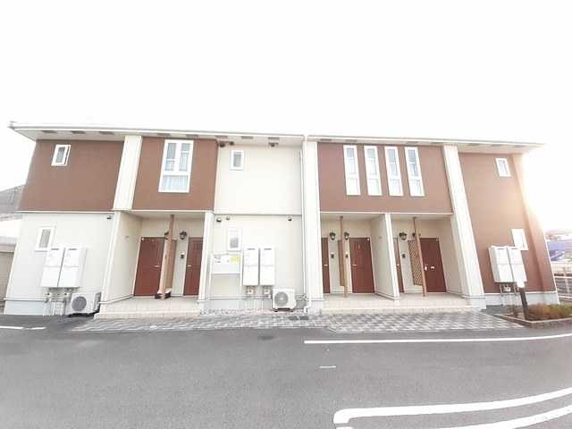 愛媛県松山市平田町77-1に2010年2月(平成22年2月)新築の賃貸住宅(間取りが2DK のアパート)、モリジェラートB(モリジェラートビー)の103号室です。木造(W造)2階建ての最下階1階角部屋になります。