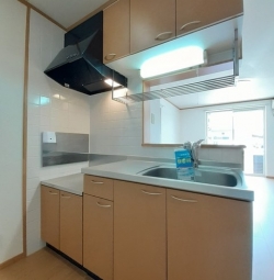 | プロパンガス、24時間電話受付、駐輪場、温水洗浄便座(シャワートイレ)、浴室乾燥機、カウンターキッチン、クローゼット、シューズボックス、室内洗濯機置場、照明器具、エアコン、BSアンテナ、モニター付インターホン、メモリーキー(オプナスキー等)、バルコニー、24時間換気、角部屋、1階、最下階、保証人不要、全室フローリング、バス・トイレ別 |
