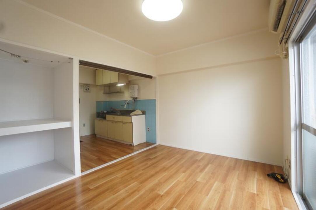当マンションのある六軒家町は、とにかくとっても便利な場所です。近くに大型スーパー、ホームセンター、病院、レストラン、コンビニなどが揃い、バス停や、市内電車の停留所にも近い。そんな人気の立地で、魅力的かつお手ごろなお家賃で住めるマンションといえば、DAIKYO.BLD.です。6帖のお部屋とあなどることなかれ。横幅の方が広いこのお部屋は、家具の配置がしやすく、上手に無駄なくお部屋を使うことが出来ます。ちょっと広めのキッチンスペースも、色々置けて重宝しそうですね。この立地でこのお家賃は、ご検討される価値ありです。