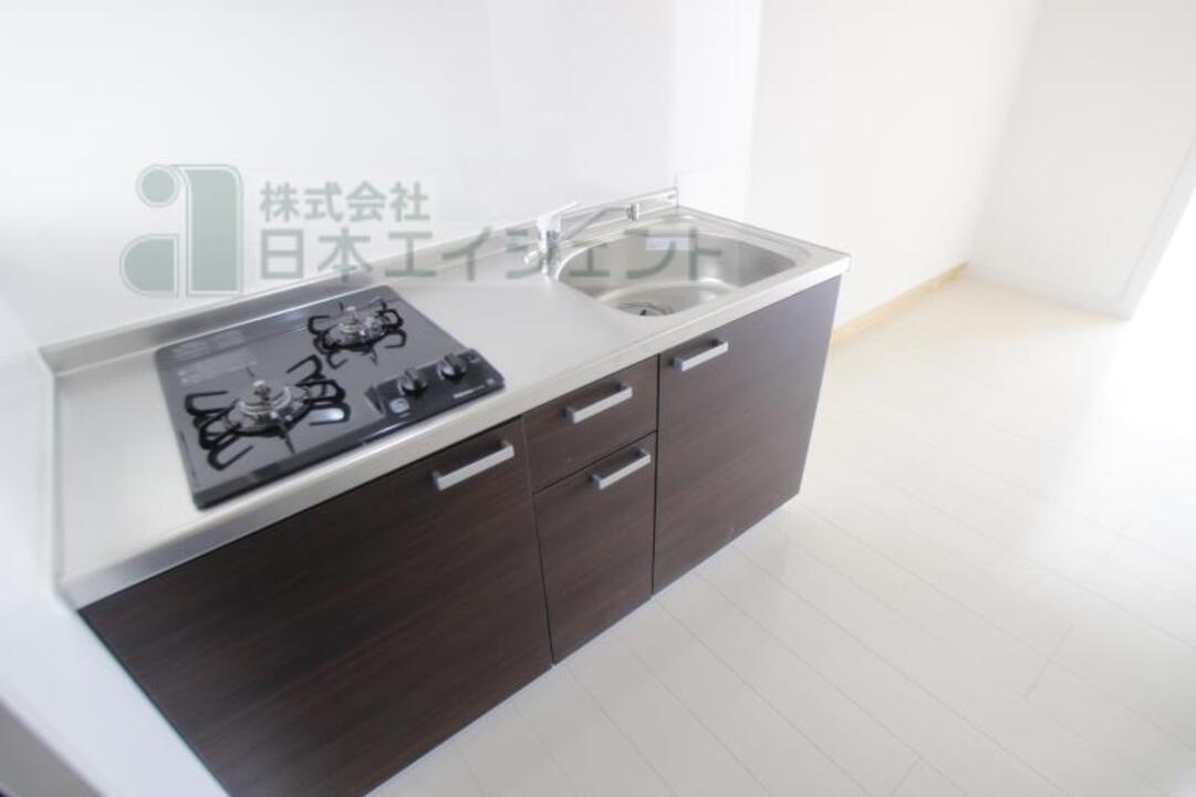 | プロパンガス、光ファイバー、駐輪場、温水洗浄便座(シャワートイレ)、洗髪洗面化粧台(シャンプードレッサー)、システムキッチン、ガスコンロ、室内洗濯機置場、照明器具、エアコン、BSアンテナ、モニター付インターホン、南向き、バス・トイレ別 |