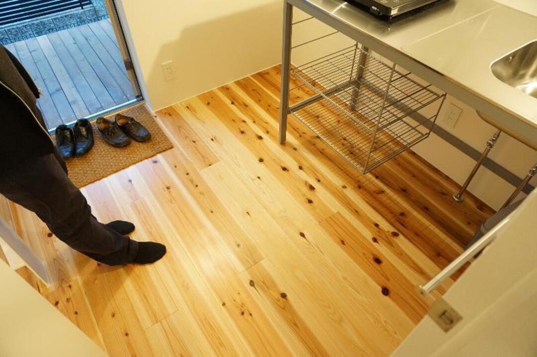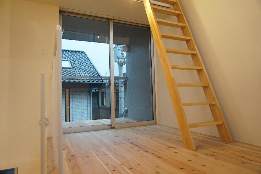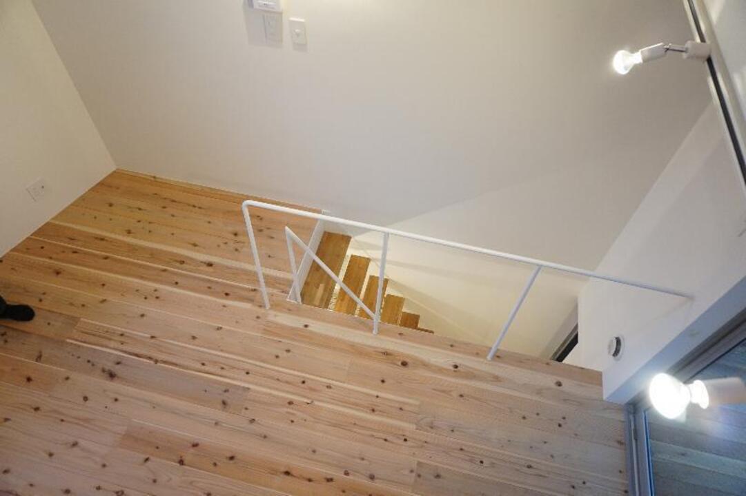 玄関を開けると木造ならではの暖かい雰囲気のキッチンとデザイン性の高い浴室。おしゃれな階段を上がると2階はテラスのような開放感のあるバルコニーに6帖のリビング。その上には、使い方自由自在のロフト付きです。リビングには北側にも大きな窓があり、とても明るく感じられます。TV付きモニターホンや洗面台、室内洗濯機置場もあり設備充実。コンビニ徒歩1分、スーパー徒歩5分、萱町6丁目駅徒歩5分と、住みやすい環境に屋内駐車場もあります。