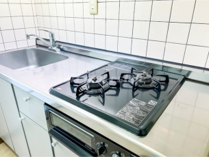 温水洗浄暖房便座、システムキッチン、ガスコンロ、照明器具、TVモニター付きインターホンなどの設備がある部屋となります。