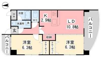 間取詳細 LDK13.7 洋6.3 洋6.3 敷引金