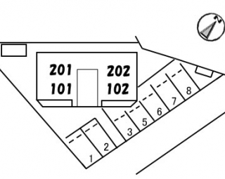愛媛県松山市桑原7丁目5-37に2005年2月(平成17年2月)新築の賃貸住宅(間取りが2DK のアパート)、ナチュールJ(ナチュールジェイ)の101号室です。軽量鉄骨造2階建ての最下階1階角部屋になります。