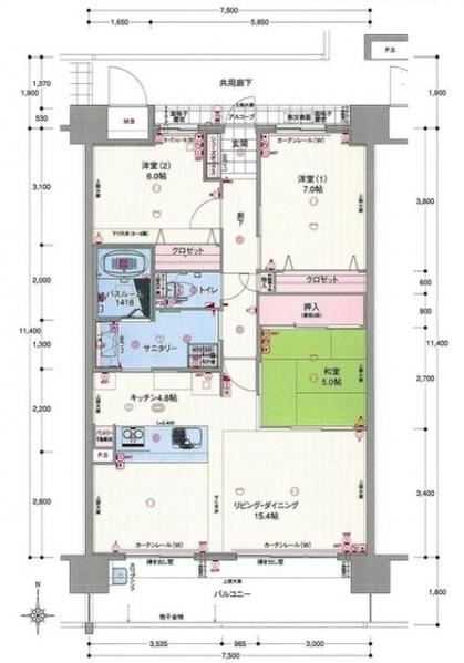 間取詳細 LDK20.2 洋6 洋7 和5 敷引金