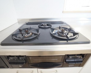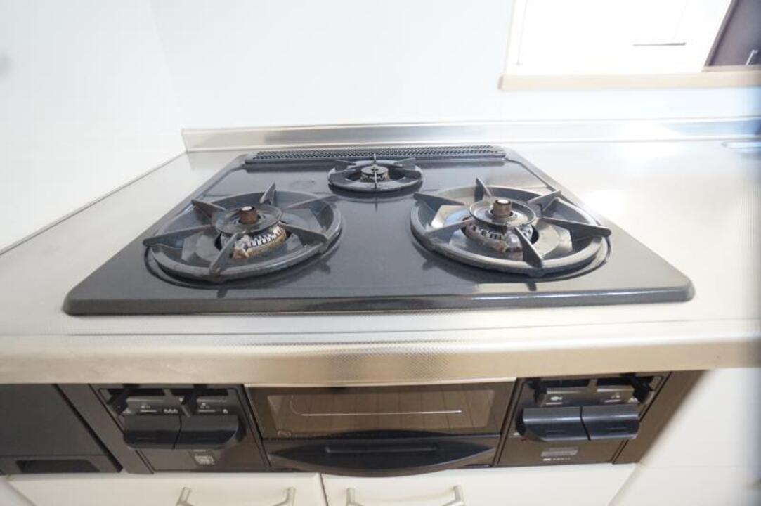 プロパンガス、CATV、駐輪場、温水洗浄便座(シャワートイレ)、オートバス(自動湯張り)、洗髪洗面化粧台(シャンプードレッサー)、追焚、浴室乾燥機、システムキッチン、カウンターキッチン、クローゼット、床下収納、室内洗濯機置場、照明器具、エアコン、モニター付インターホン、メゾネット、バス・トイレ別