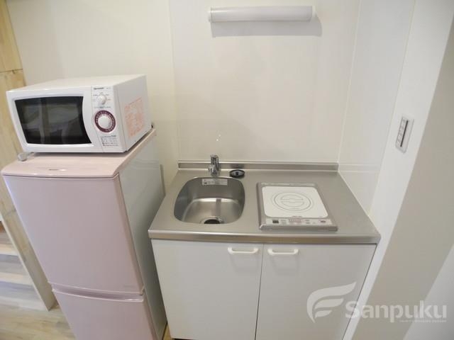 | エレベーター、プロパンガス、CATV、防犯カメラ、24時間電話受付、オートロック、駐輪場、温水洗浄便座(シャワートイレ)、システムキッチン、IHクッキングヒーター、照明器具、冷蔵庫、ベッド、エアコン、モニター付インターホン、暖房便座、保証人不要、2階以上、全室フローリング、バス・トイレ別 |