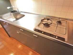 温水洗浄暖房便座、洗髪洗面化粧台(シャンプードレッサー)、システムキッチン、ガスコンロなどの設備がある部屋となります。