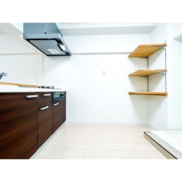 温水洗浄暖房便座、室内洗濯機置き場、カウンターキッチン、システムキッチン、ガスコンロ、照明器具、TVモニター付きインターホンなどの設備がある部屋となります。