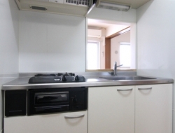 | プロパンガス、専用ゴミ置き場、防犯カメラ、24時間電話受付、バイク置き場、駐輪場、宅配ボックス、温水洗浄便座(シャワートイレ)、洗髪洗面化粧台(シャンプードレッサー)、浴室乾燥機、システムキッチン、カウンターキッチン、ガスコンロ、コンロ2口以上、クローゼット、ストックハウス、シューズボックス、室内洗濯機置場、エアコン、BSアンテナ、モニター付インターホン、バルコニー、子供可、2階以上、全室フローリング、バス・トイレ別 |