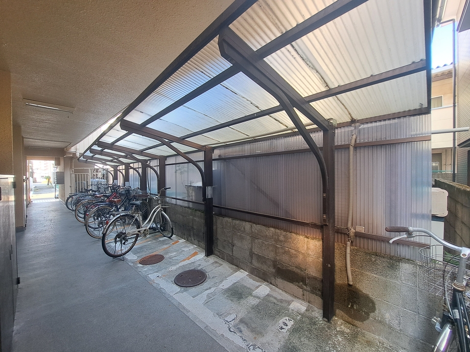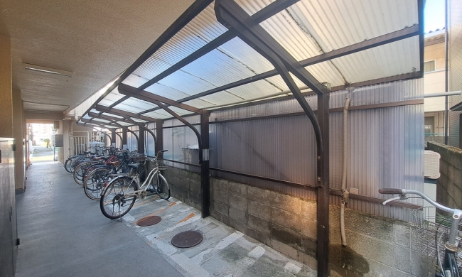プロパンガス、光ファイバー、駐輪場、温水洗浄便座(シャワートイレ)、追焚、照明器具、エアコン、モニター付インターホン、角部屋、最上階、南向き、バス・トイレ別
