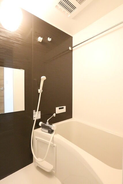 温水洗浄暖房便座、洗髪洗面化粧台(シャンプードレッサー)、浴室乾燥機、追焚、室内洗濯機置き場、システムキッチン、ガスコンロ、照明器具、TVモニター付きインターホンなどの設備がある部屋となります。
