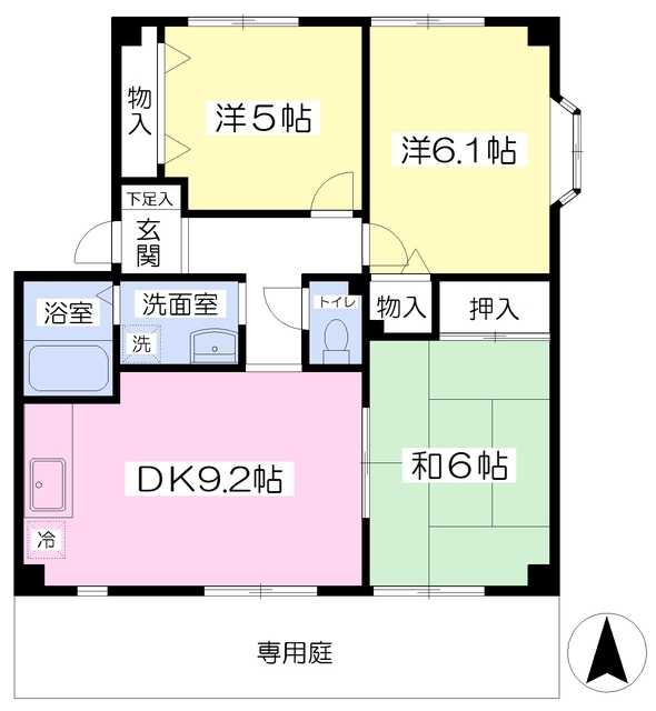 専用庭 角部屋 1階 最下階 子供可 保証人不要 南向き バス・トイレ別 押入れ