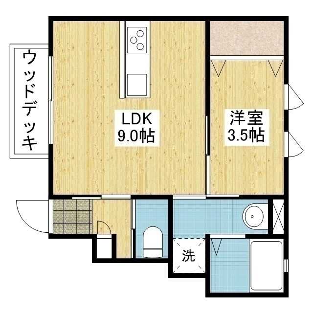 愛媛県松山市正円寺3丁目10-1に2017年3月(平成29年3月)新築の賃貸住宅(間取りが1LDK のアパート)、アルト正円寺(アルトショウエンジ)の103号室です。木造(W造)2階建ての最下階1階角部屋になります。