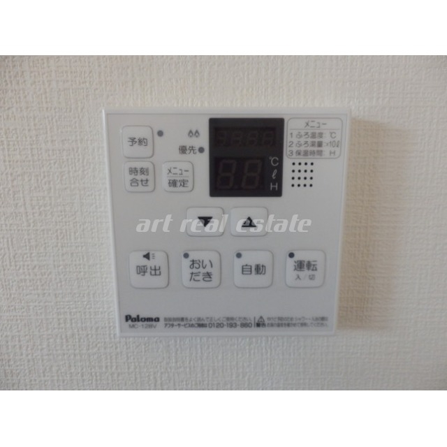 温水洗浄暖房便座、洗髪洗面化粧台(シャンプードレッサー)、追焚、室内洗濯機置き場、カウンターキッチン、システムキッチン、ガスコンロ、照明器具、TVモニター付きインターホンなどの設備がある部屋となります。