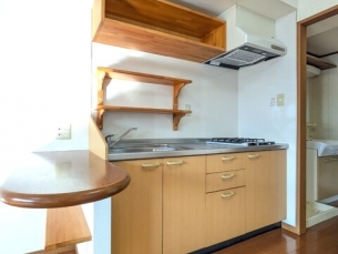 温水洗浄暖房便座、室内洗濯機置き場、システムキッチン、ガスコンロ、照明器具、TVモニター付きインターホンなどの設備がある部屋となります。