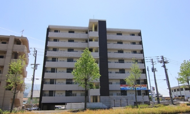 愛媛県東温市北方3222-1に2007年10月(平成19年10月)新築の賃貸住宅(間取りが2DK のマンション)、ヴィラアンソレイエの201号室です。鉄筋コンクリート造(RC造)8階建ての2階角部屋になります。