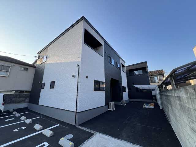 愛媛県松山市石手5丁目3-10に2026年3月(令和8年3月)新築の賃貸住宅(間取りが3LDK のアパート)、キャトルセゾン道後(キャトルセゾンドウゴ)の3号室です。木造(W造)2階建ての最上階最下階1-2階になります。