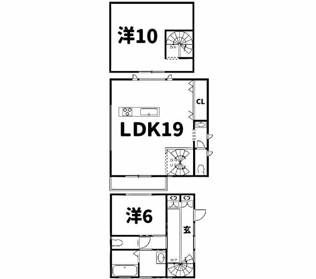メゾネットタイプ。トイレ2箇所。一軒家。