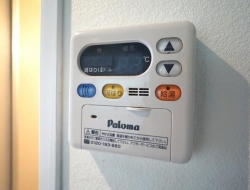 プロパンガス、専用ゴミ置き場、CATV、24時間電話受付、バイク置き場、駐輪場、温水洗浄便座(シャワートイレ)、シューズボックス、照明器具、エアコン、バルコニー、暖房便座、南向き、2階以上、全室フローリング、バス・トイレ別、押入れ